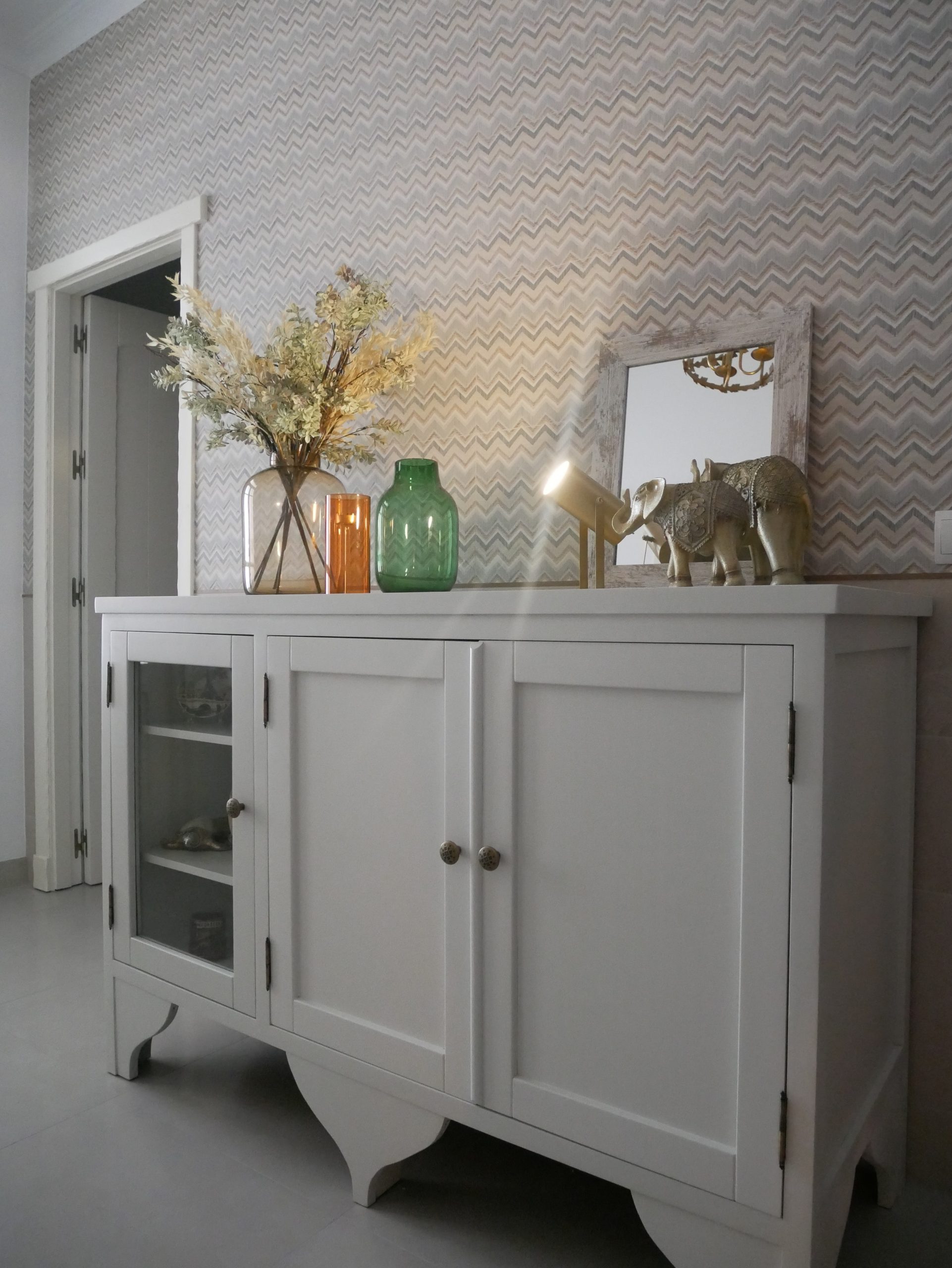 Aprovechar el armario existente, con una nueva tonalidad y añadiendo la arpillera para mayor calidez.